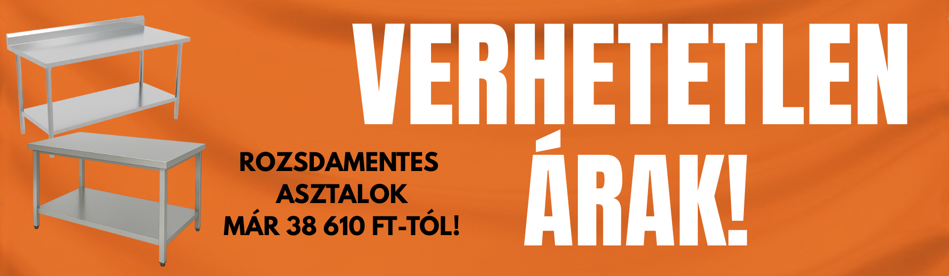 Rozsdamentes asztalok, ipari mosogatók, polcok és állványok, valamint egyéb berendezések széles választékban. Időtálló, tartós termékeink nagyban megkönnyítik a konyha tisztán tartását és a higiéniai előírások betartását. Új és használt rozsdamentes gépeink széles méretválasztékban kaphatók, így biztosan talál köztük az elvárásainak megfelelőt.