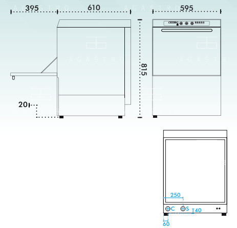 Professzionális mosogatógép-boilerrel szerelt egység, mely rozsdamentes acélból (AISI 304) készült, dupla falú kivitelben. A medence lekerekített élekkel lett kialakítva, hogy a tisztítás egyszerűbb legyen. A mosás és az öblítés külön, független rendszerben működik, alsó és felső hajtással – ez azt jelenti, hogy mindkét irányból végezhető a munkafolyamat. Az ajtó szintén dupla falú, az öblítésről pedig „Rinse OK” jelzés gondoskodik, amely garantálja, hogy az öblítés sikeresen megtörtént.